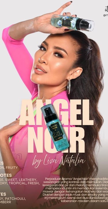 Angel Noir by Liza Natalia Faisha memiliki aroma fruity segar yang energik, melambangkan semangat hidup dan optimisme. Dengan ketahanan hingga 8 jam, Body Mist EDP ini bukan hanya sekadar wewangian, tapi juga boost of confidence yang menemani setiap langkah Anda.